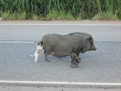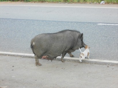 そんなことで以前ダラットで撮った豚が育てる子犬をどうぞ!(半年もしたら母は食べられてしまうのか?)