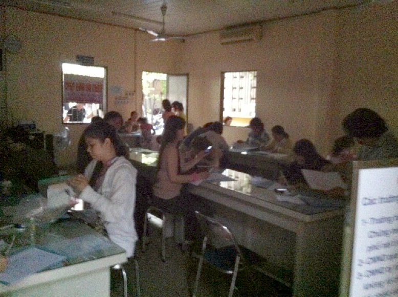 その後、とりあえずのパスポート申請に行かせました。 書類を書いていると、突然、停電、、、、