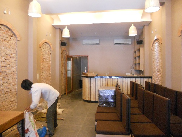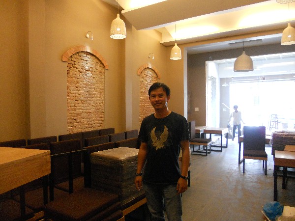 ノック氏のカフェを視察に行く。2〜3日前に話した時、15日オープンと言っていたのに、昨日の段階でこの程度。