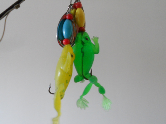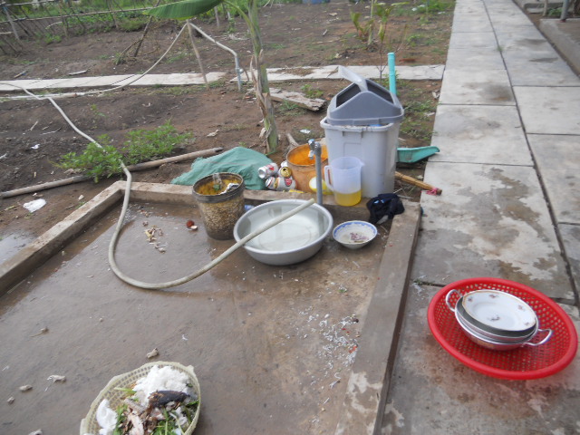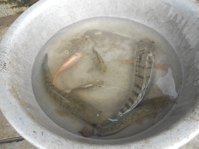 朝から生きたカエルで釣ってる人の釣果! 右は厨房です。ここで皿洗ってます。