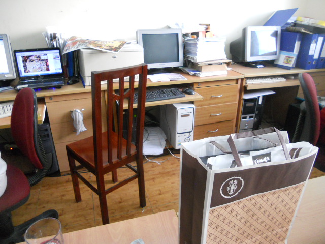 朝から印刷屋のフンさん事務所へ行き打ち合わせ! カメラ向けたらみんな逃げた!