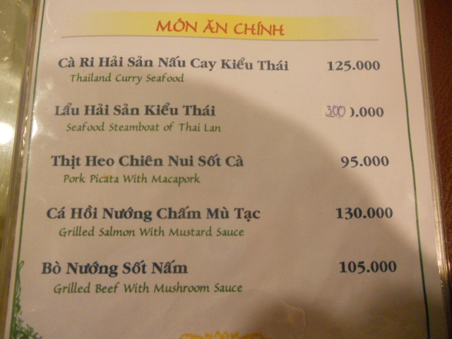 料理は個性的で大変おいしいく、価格は78,000〜200,000VND中心です