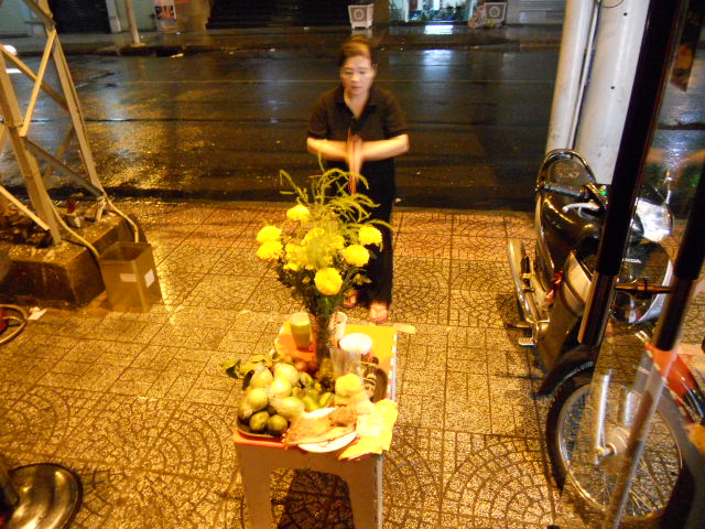 新暦9月1日(旧暦7/15)は飢えた幽霊の日だそうで、おばちゃんが祈ってくれました。