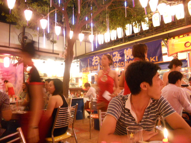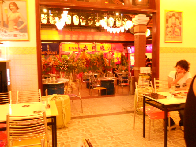 派手な看板と、20:00時ごろの店内、金曜なのにガラーンとしている