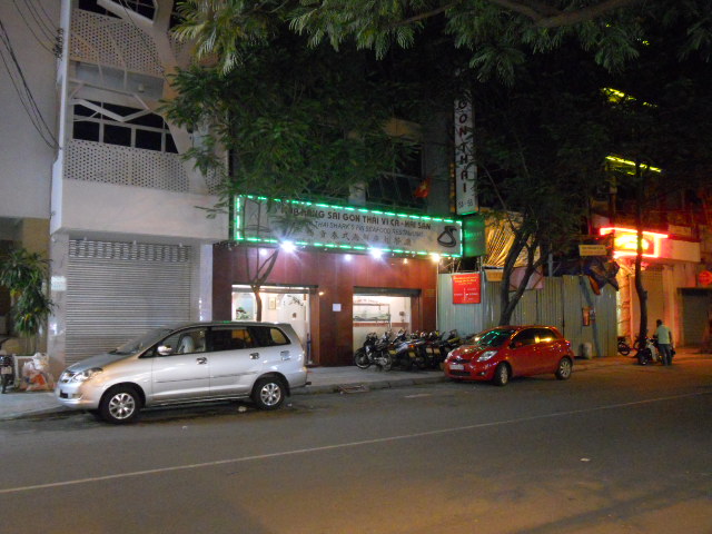 ゴールドの車奥がカラオケ、赤の車の奥が有名なベトナム料理屋ができるらしい。