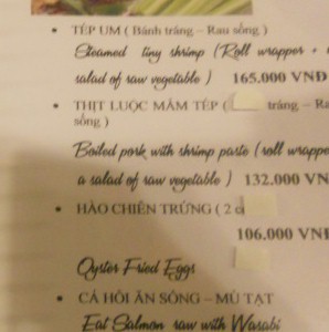 驚いたのは価格が二重表記で、外人用とベトナム人用に分かれている。