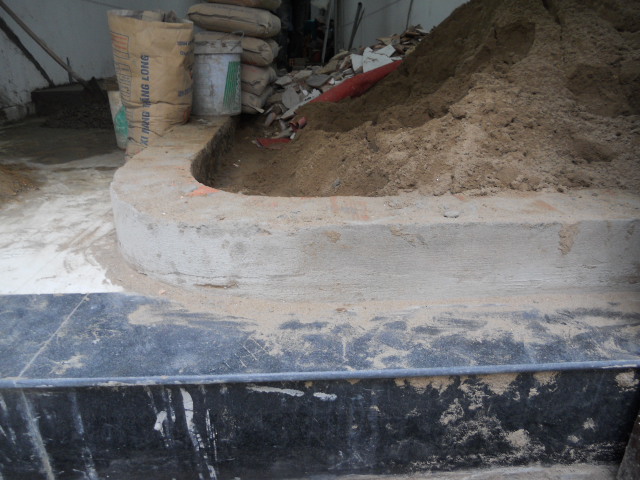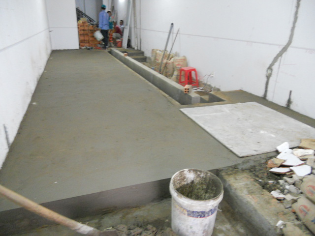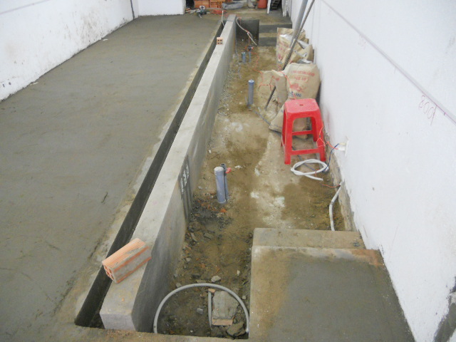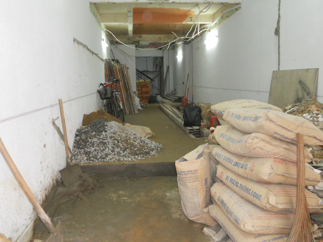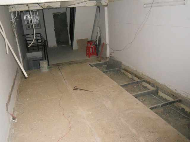 1Fは床上げしていて、カウンター下の排水溝など終わっていて、トイレはすべて撤去され工事していた。