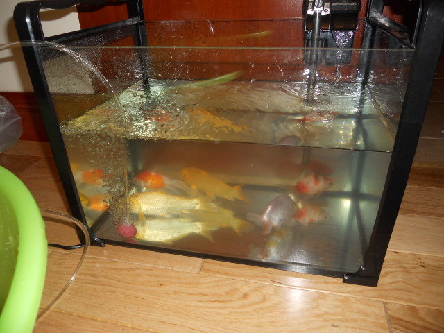 そこから金魚と鯉の水合わせを開始して、ベットに入れるのは5時を過ぎてしまったので、クタクタです。