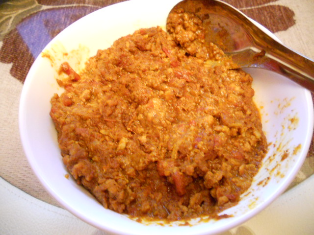 最初にニンニクと生姜炒めるときに フライパンにくっついたので、サラダ油を少々使ってしまった。いいのかなぁ〜?