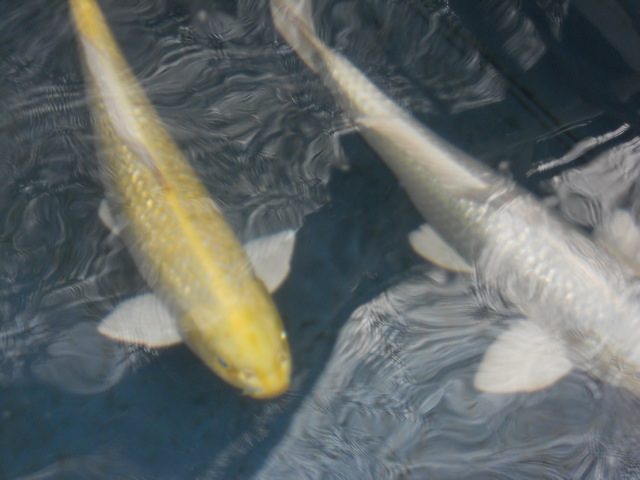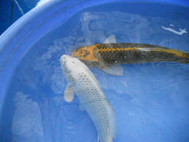 水合わせ中、鯉と金魚(問題なさそうだなぁ〜?)