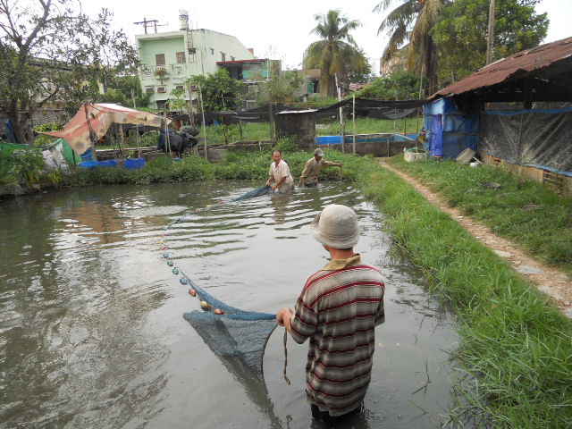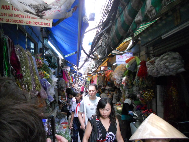 ヤンシン市場で買い物した。チュ氏と待ち合わせして鯉を見に行く。戻って庶民的なベトナム料理屋で食事。