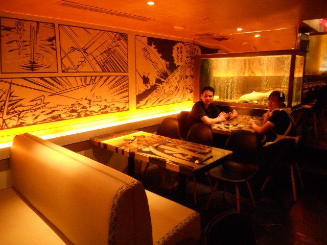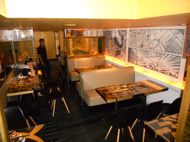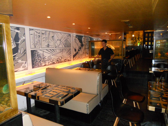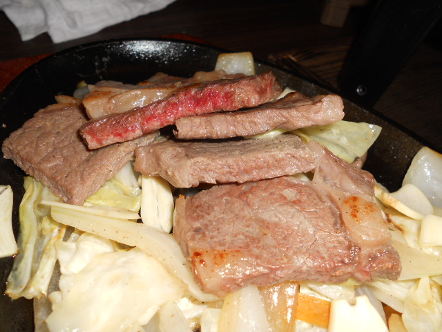 味raku店内と何故か1枚のみ生焼けのビーフ鉄板焼き